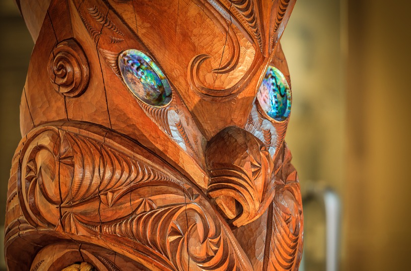 This carving is made from native New Zealand Totara and weighs 1.3 tons.