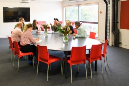 The Green Room is a self-contained workshop space bookable for short or full day meetings, workshops and break-out activities. This space seats 20 - 30 people around the board room table and has views of the hills of Upper Hutt.